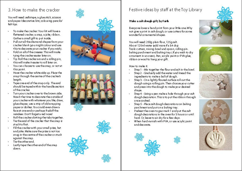 Scribble and smudge created craft kits for Walthamstow Toy Library to donate to a local charity. The kit included how to decorate a wooden ginger bread man for a xmas tree, or a d.i.y xmas cracker, and a sparkly sequin gift tag. You can see some ideas the staff came up with below. The toy library opens back up with loaning on Jan 4th. The mobile toy library can start taking orders starting that week too.